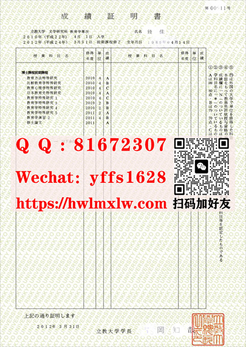 日本立教大学成绩证明书范本|仿製立教大學成績單 |