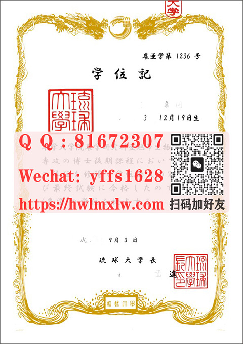 日本琉球大學博士學位記範本|办理琉球大学博士学位证书|制作修士学位 |