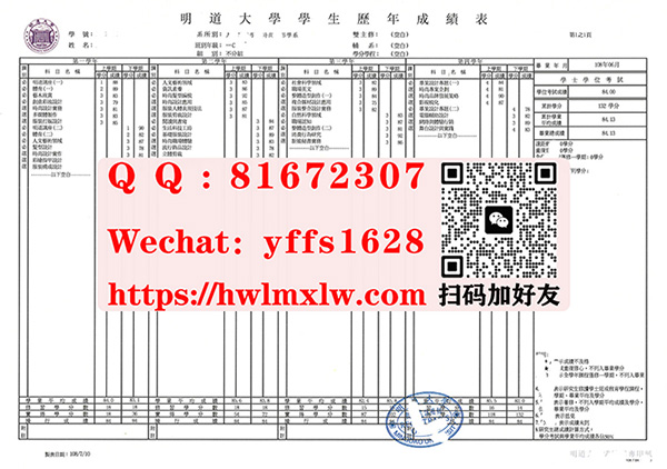 明道大學,前身為明道管理學院。位在中國臺灣省彰化縣埤頭鄉。昔南開創立之初,本為中學,後明道創立之時,亦為一所中學。此非巧合,乃仰慕先德、作育英才之舉也。分立設計、管理、理工及人文等四學院。增設電子物理研究所、環境規劃與防災學系、財務金融學系、管理學位學程(進修學士班)、管理研究所企業高階管理碩士班。臺灣明道大學成績單樣本|製造臺灣明道大學成績單